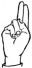 На ћирилици написано МИРОСЛАВ ГАЈЕВИЋ састоји се из 15 слова [?]. Исписано ћириличном једноручном азбуком за глувонеме:
